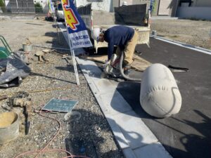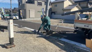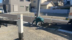 埋め込んだ後は計器を使って垂直状態にした後、土を埋め戻して固めて完成です!