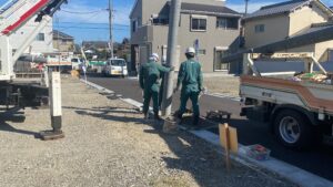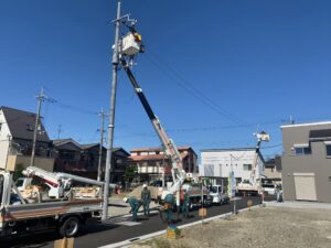 池島分譲地内に電柱が建ちました!