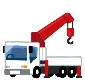 それでは電柱を立てていきましょう!レッカー車で引き上げて垂直に近い状態にします。
