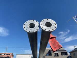 続いて、穴掘りが完了するとこんな管を埋め込みます!ここに電柱を差し込むんですね!