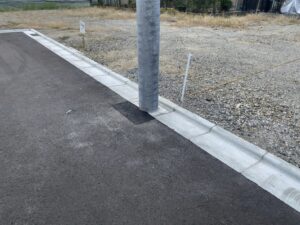 池島町分譲地内の道路に電柱が建ちました。