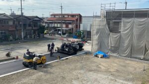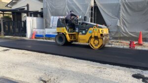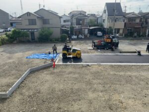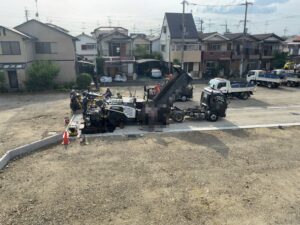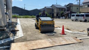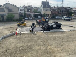 手前まで終えると今度は前面道路の番です。そして追いかけるように固めていきます!