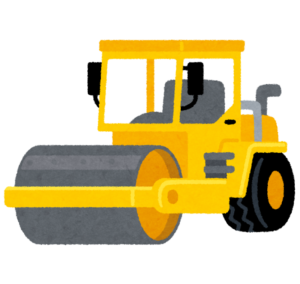 引き終えた後ろからローラー車が追いかけるようにアスファルトを固めていきます。