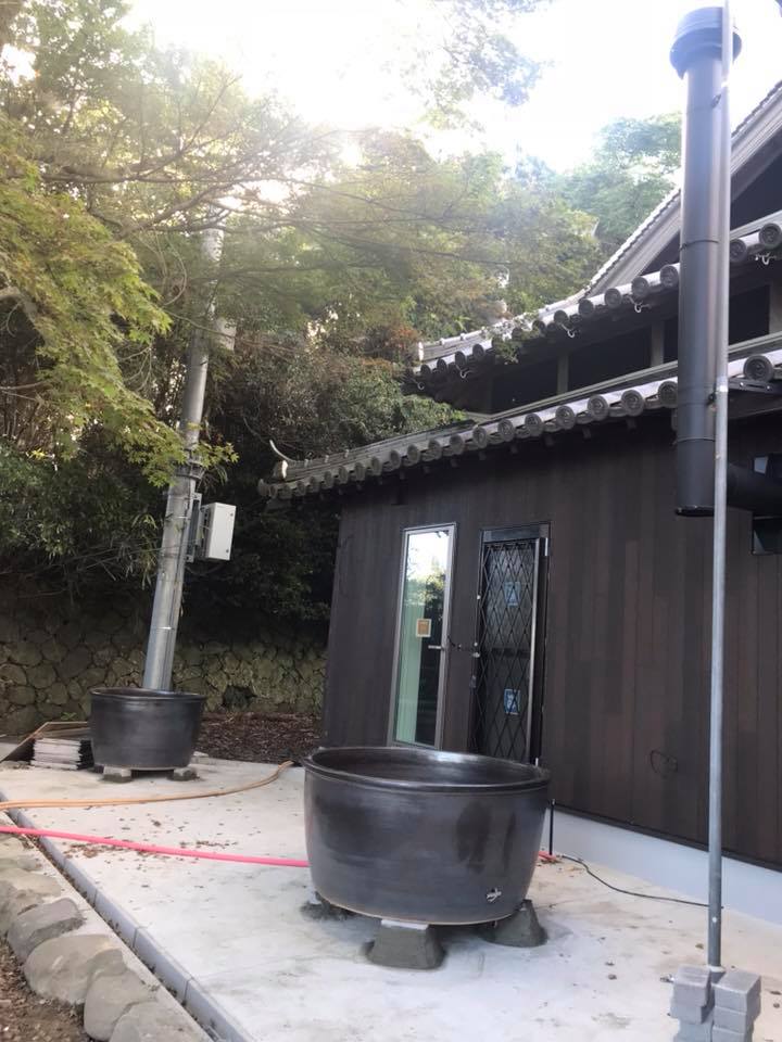 信楽の陶器風呂も遂に現場に搬入する事が出来、固定も済ませました。