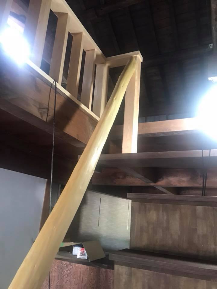 先週はたんす階段の手すりと上がり切った部分の柵を設置しました。