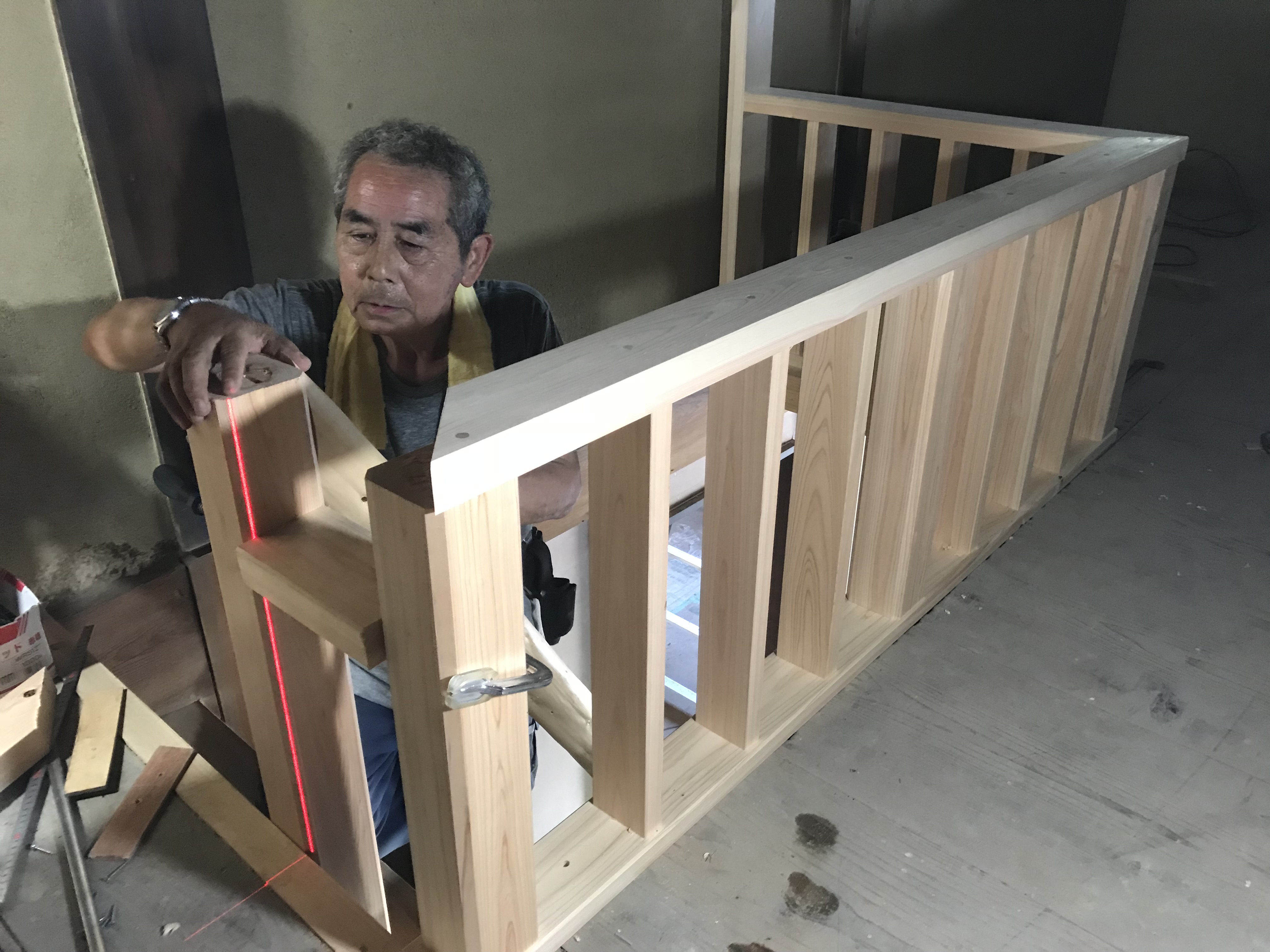 柵と無垢の手すりを取り付けるとは、驚きの速さです。