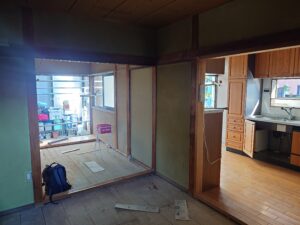 まずは、重機を用いて解体作業を行う前に、建物の内部にある建具や家具、設備機器などを撤去いたしました。