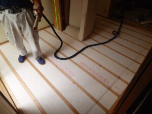 和室の方は、畳を撤去した後、下地の工事を行い、断熱処理をして同様にフローリングを仕上げていきました。