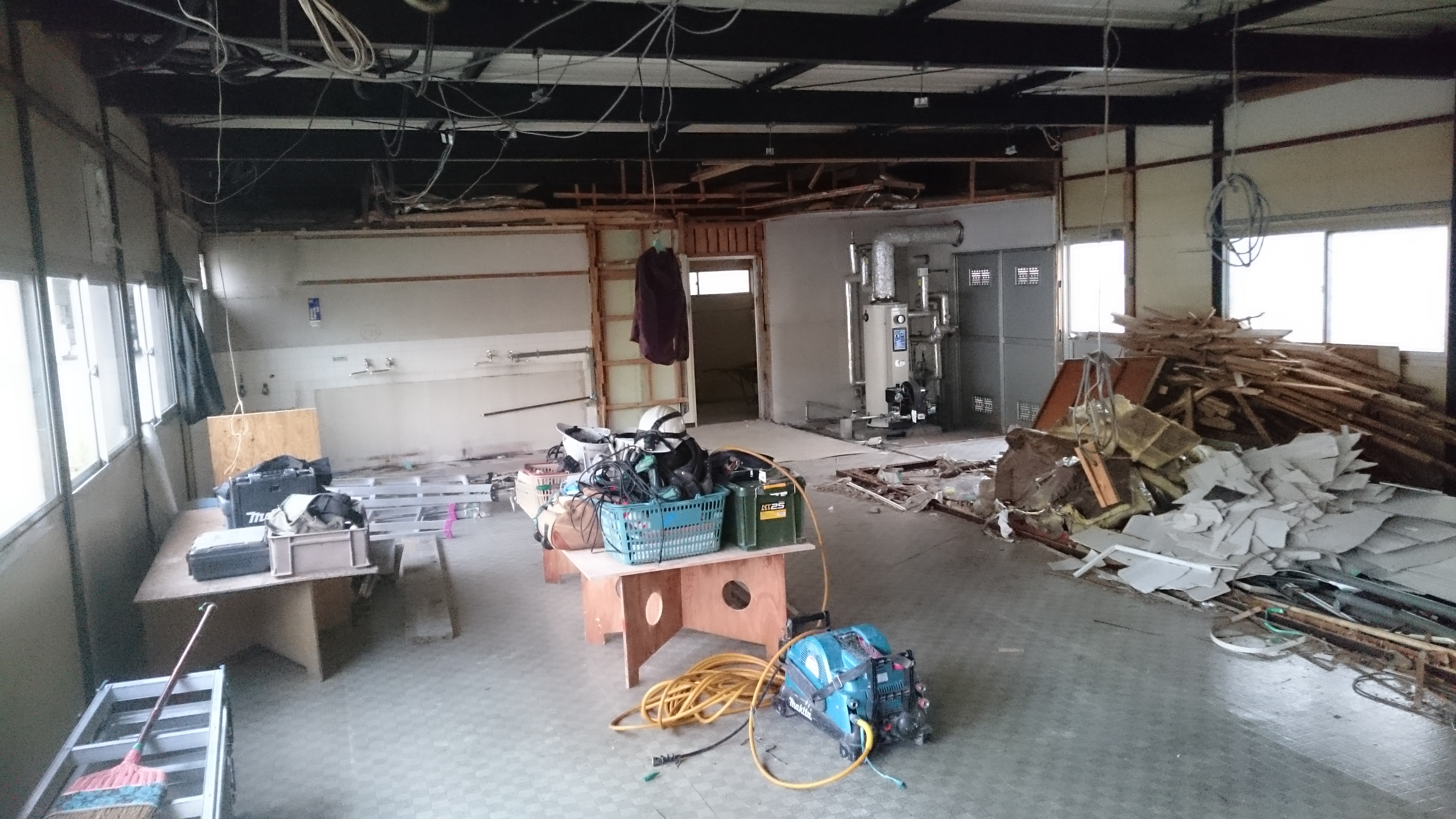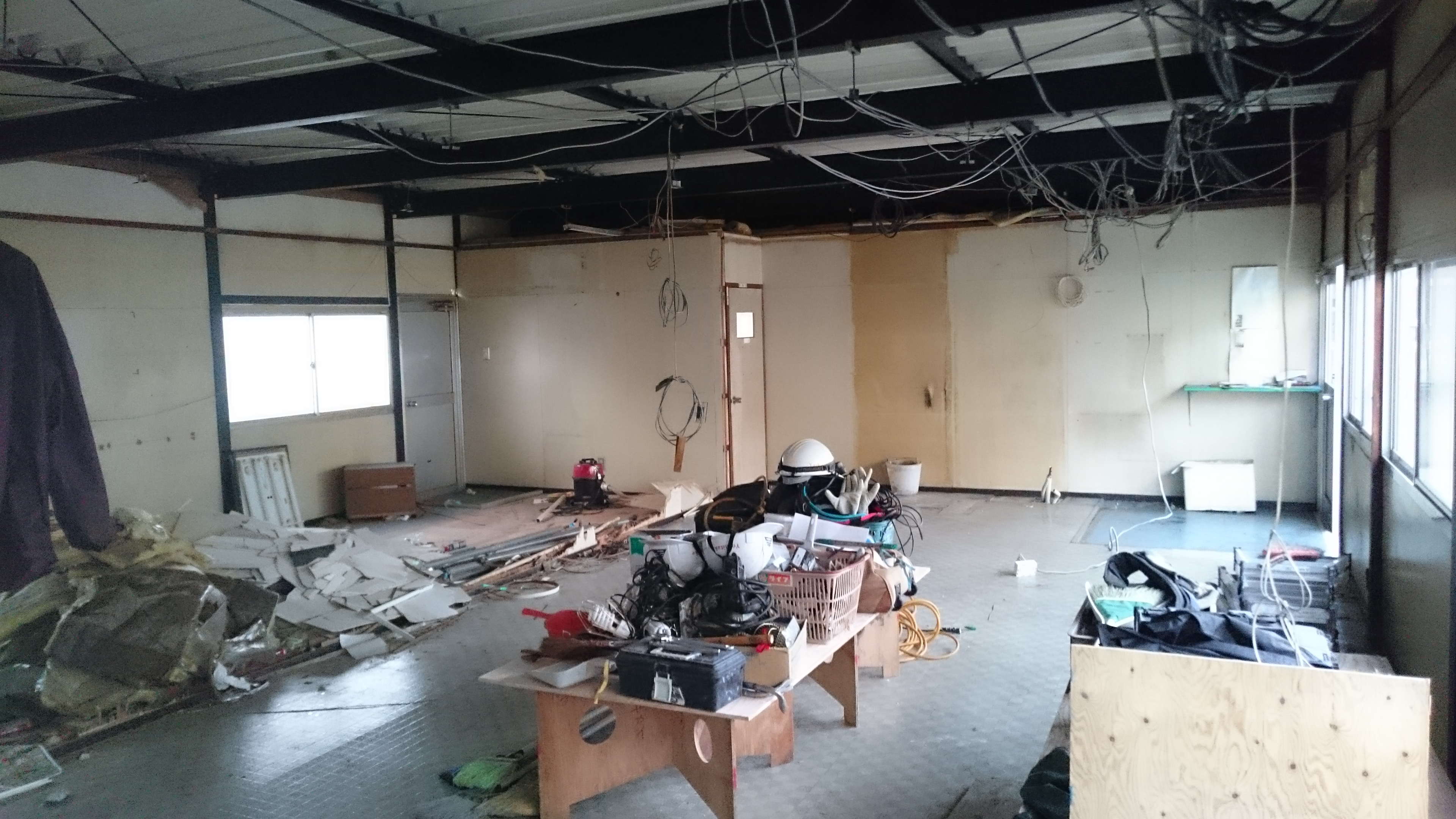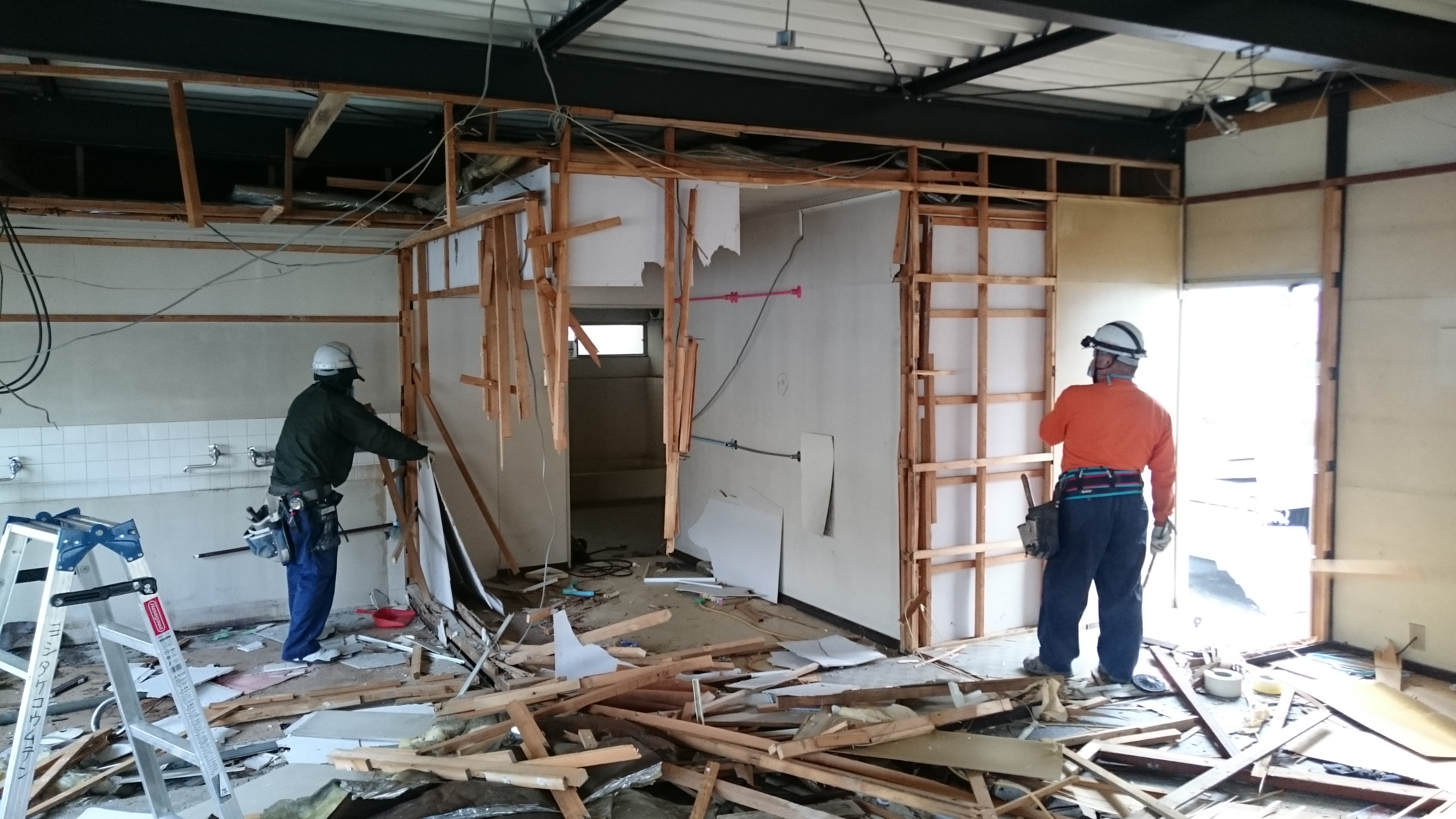 まず本日は間仕切り壁や天井の解体から始めました。