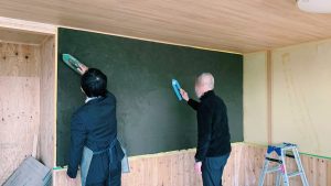 当社の大工さんとM社様の社員さんたちで壁を塗ったそうなんですが、