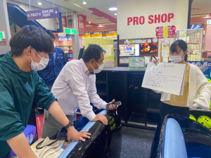 今回のルールは、1ゲーム目は練習、2ゲーム目は二人一組のチーム戦、