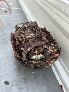 12月にリベンジし蔦を撤去していくと、ありました。大きなスズメバチの巣が。