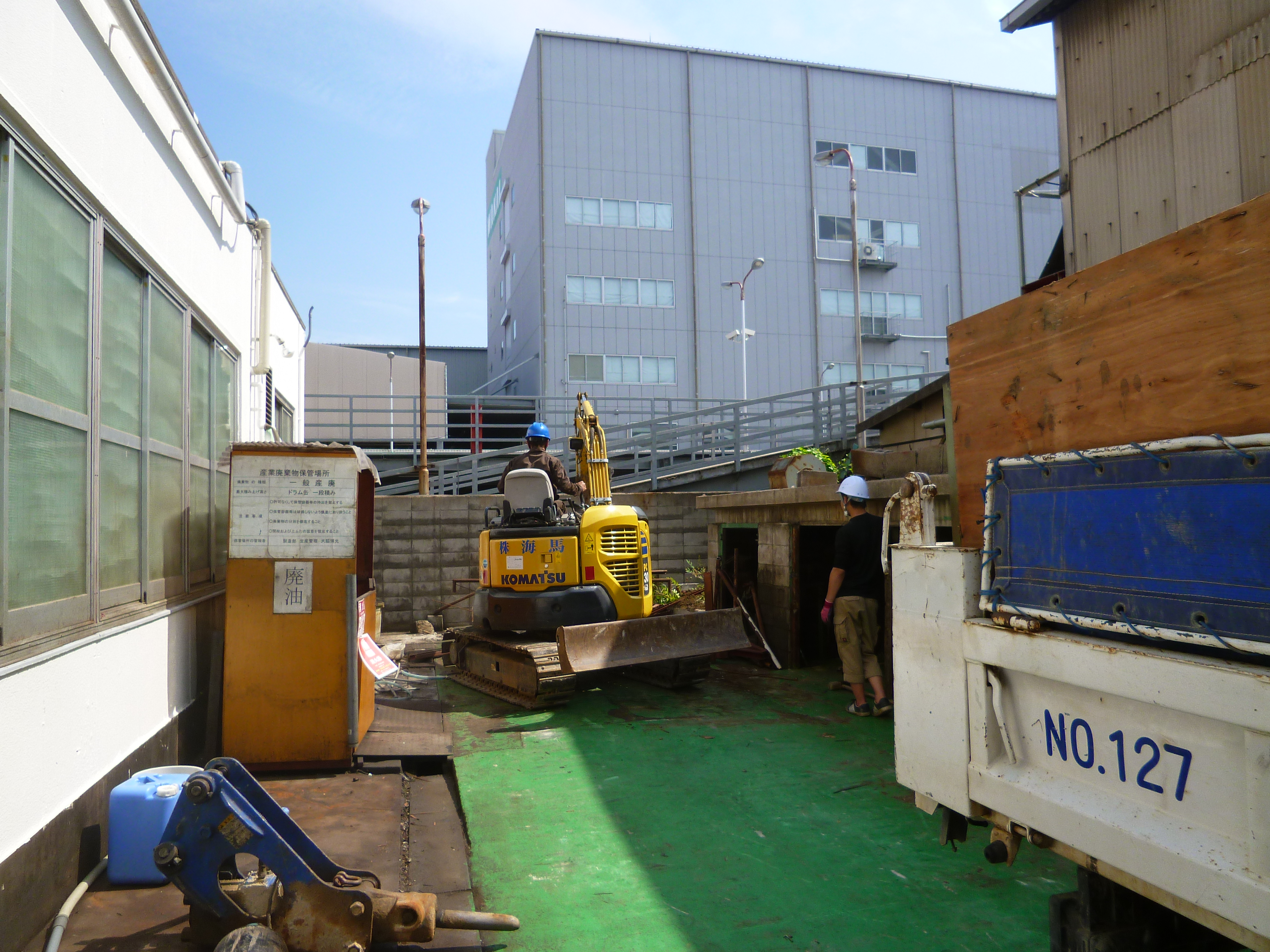 保育園の工事から戻ってきて、まず工場内の解体工事を行っております。