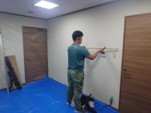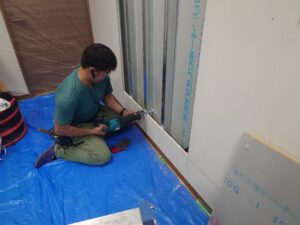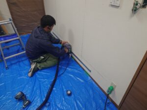 まずは、開口する部分の墨出しをして、墨に沿って壁の切断を行いました。