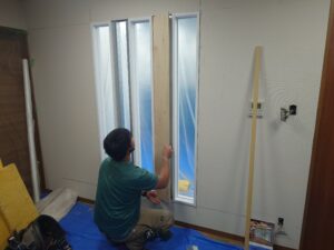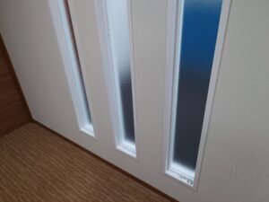 枠の施工が完了した後、壁両面のクロスを貼り替えて、最後にガラス本体を取り付けました。