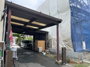 もともと、敷地内に小屋があり、今回その小屋を撤去することで駐車場を少し広げられるようになりました。