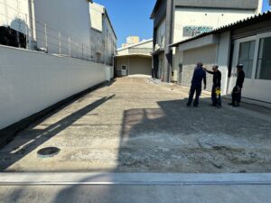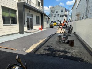 Y社様の事業再構築補助金を使用した改修工事、いよいよ最後の作業の『アスファルト工事』です。