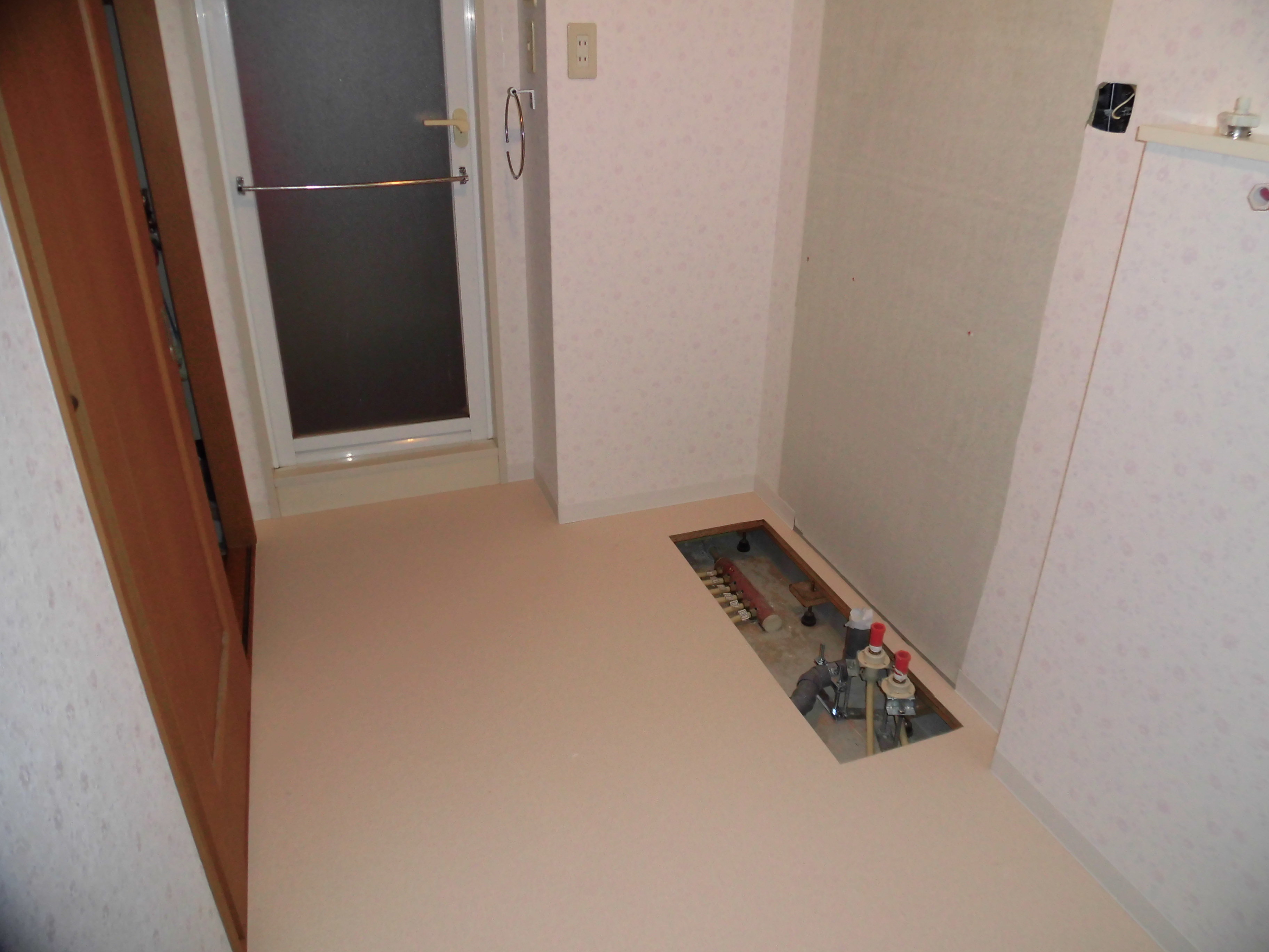 このあと、キッチン・洗面の給排水管、ガス管を新しく入れるキッチン・洗面に合わせて調整します。