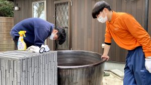 他にも、枯葉を集めたり、露天風呂の掃除などもしてもらいました。