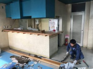 まずキッチンや間仕切り壁を撤去し、搬出、処分しました。
