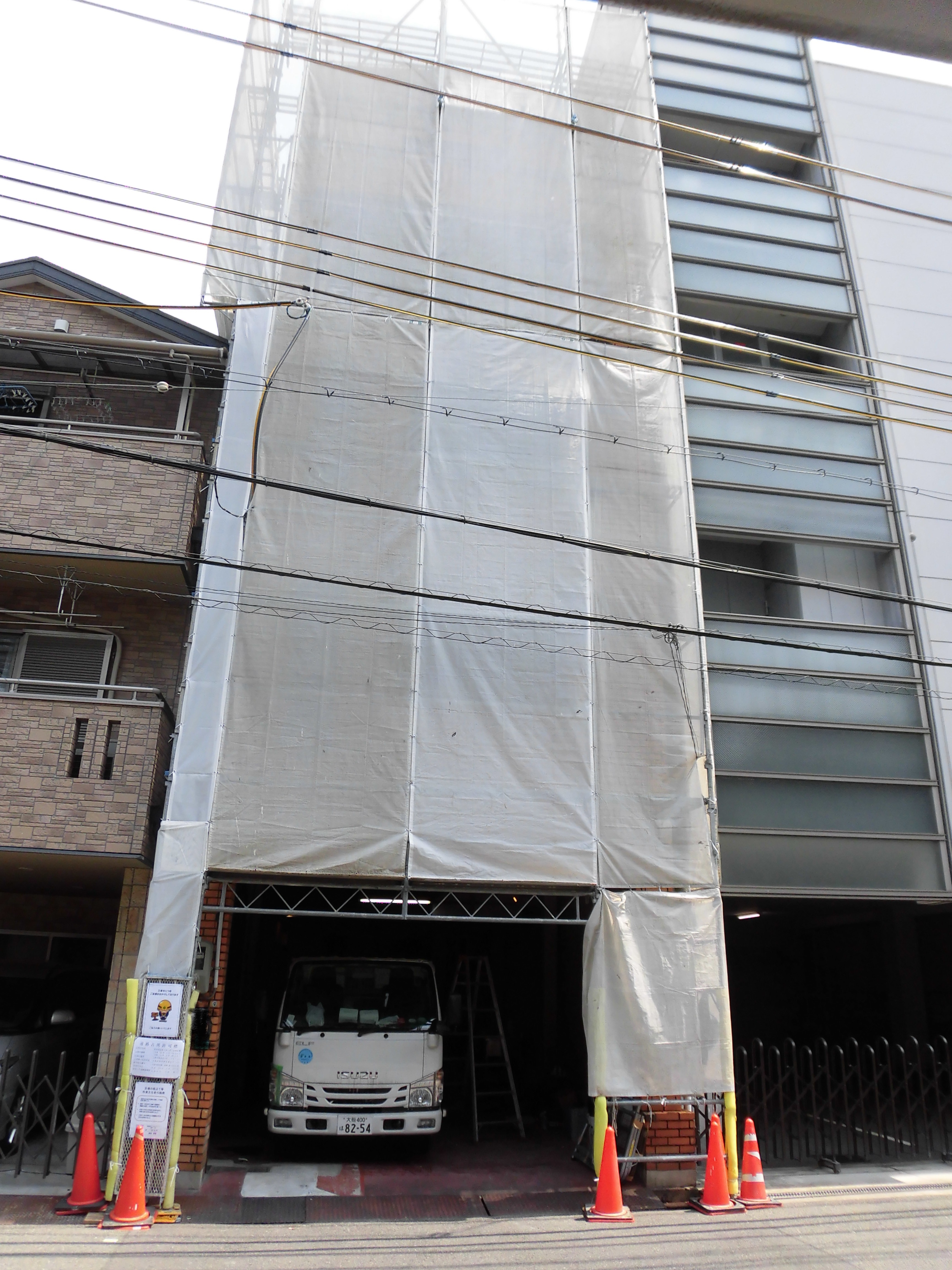 月曜日に足場をたてて、昨日から解体作業に入っています。