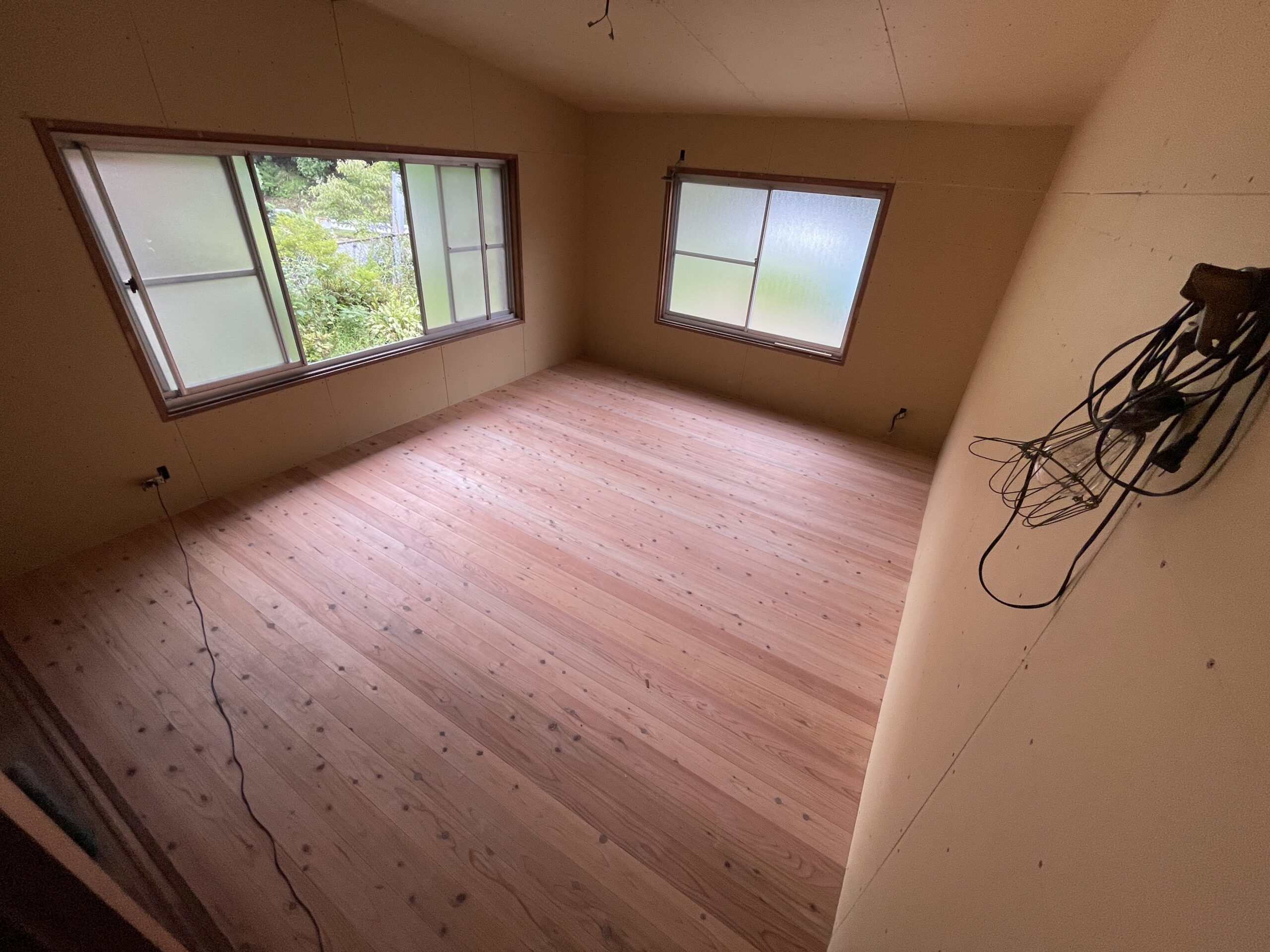 改修では、天井・壁・床の全面的なやり替えに加え、水回り設備の刷新、そして左官仕上げによる空間の質感向上を図っています。