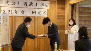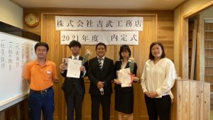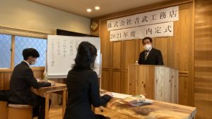 コロナウイルスで大変な時期ですが、内定者を迎え、内定式が行えた事とてもうれしく思います。