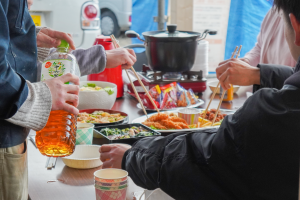 その後、お施主様の計らいでとても豪華な手料理を用意していただき、どんな家にしたいかなど