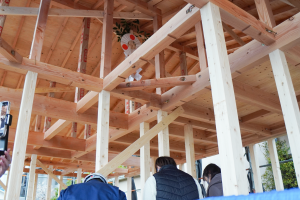 そして、御幣を家の一番高い位置にある棟木に括り付け、工事が無事故で終わること祈願しました。