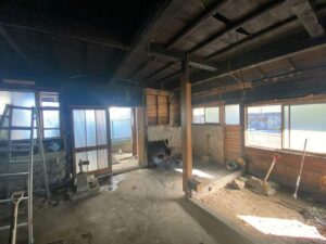 こちらの一室を全て解体し、スケルトンの状態にしました。