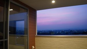 お祝いをしている頃、日も落ちてきてバルコニーから見える景色がとても綺麗でした✨