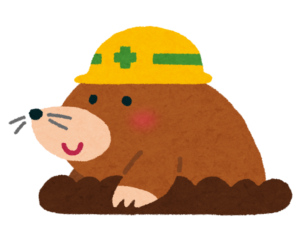 この盛り上がりは『モグラ塚』といい、モグラがエサを探して土中を掘り進んだ痕跡です!