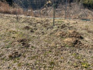 果樹園の様子を見ていると…… ん? いたる所に土の盛り上がりを発見!