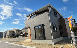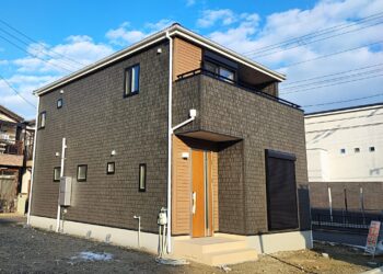 四角い形に、外壁には茶色のアクセントも入れおしゃれでかっこいい見た目に仕上げました。