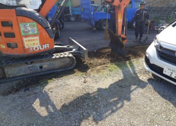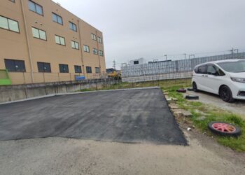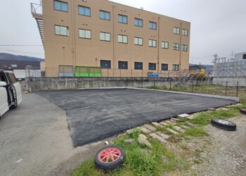 駐車場の一部舗装とライン引き、車止めブロックの設置を行いました。