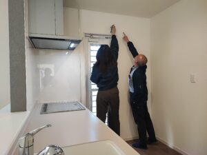 工事の終わった室内で、傷や施工不良がないかのチェックをしていきます。